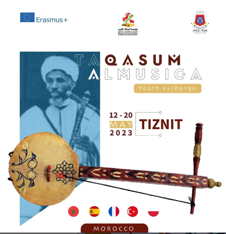 Del 12 al 20 de mayo de 2023, la Fundación Amigos de Marruecos organizó en la ciudad de Tiznit el intercambio juvenil internacional “Taqasum Almusica” (Compartir la música), una iniciativa desarrollada en el marco del Programa Erasmus+ de la Unión Europea.