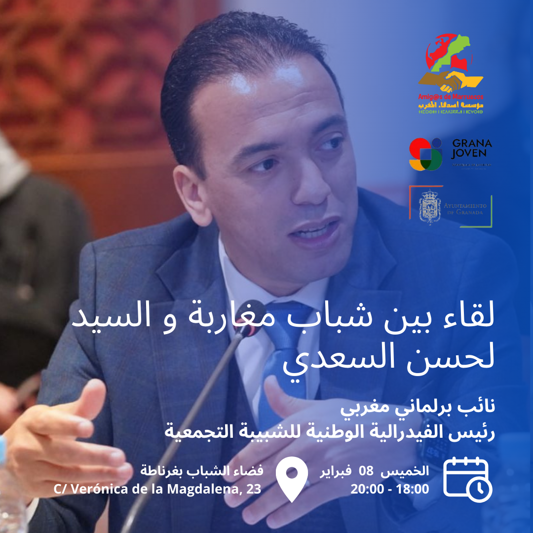 El Encuentro de Jóvenes Marroquíes con Lahcen Essaady, diputado del Parlamento marroquí, se celebró en Granada con el propósito de escuchar y dialogar con la juventud marroquí residente en España. El evento contó también con la participación de la Sra. Fatine, quien acompañó este valioso espacio de intercambio.
